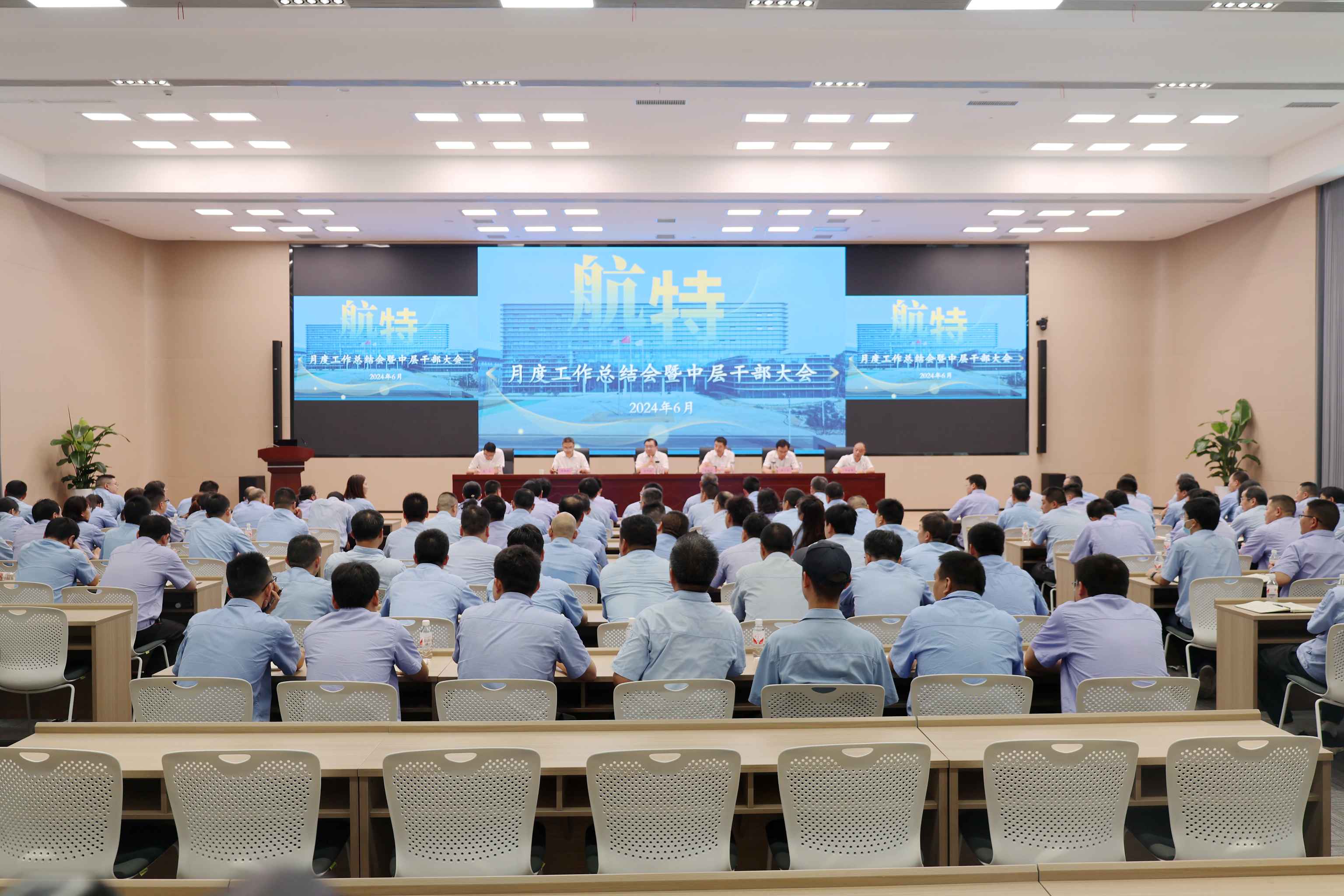 6月11日,航特裝備月度工作總結(jié)會(huì)暨中層干部大會(huì)在總部大樓暨輕量化研發(fā)中心報(bào)告廳舉行。公司高管、中層干部共計(jì)155人參會(huì),公司黨委書記、副總經(jīng)理宋馳平主持會(huì)議。