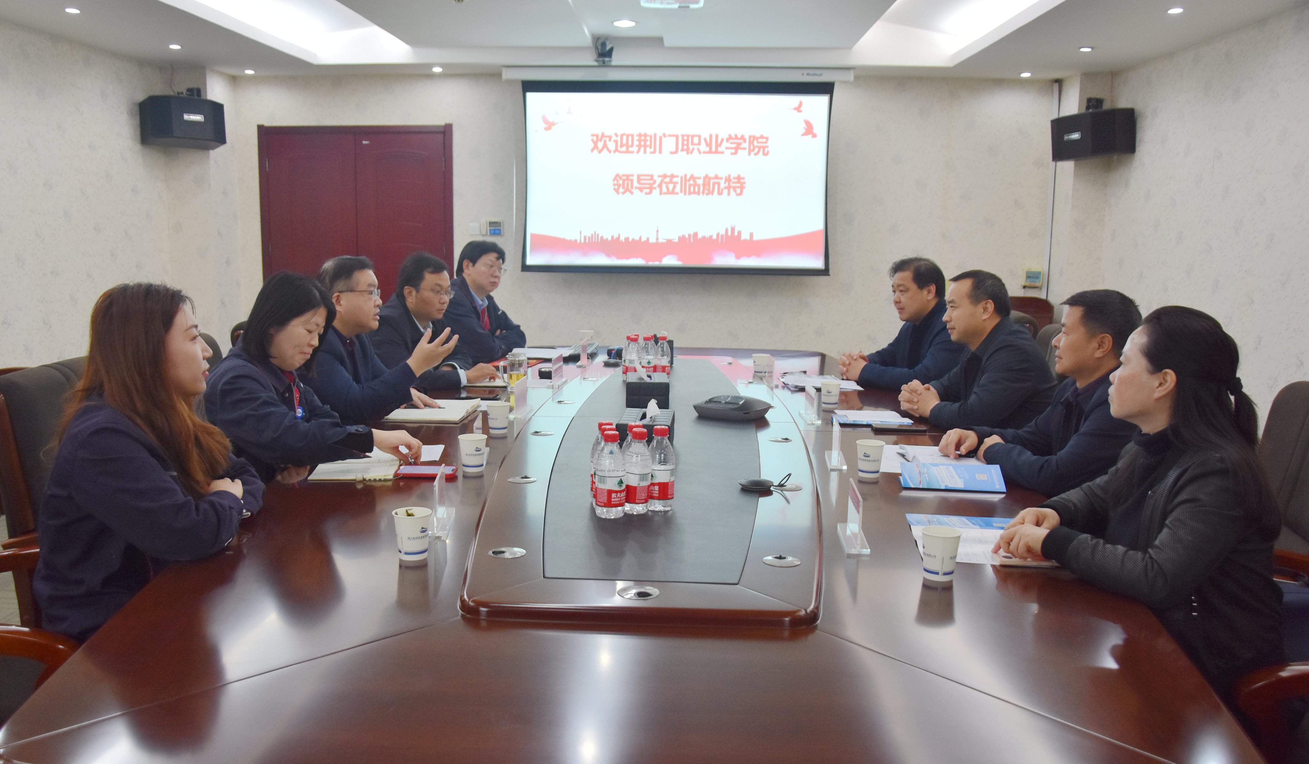 4月27日,荊門職業(yè)學院院長王義春等一行來到航特裝備考察交流。總經(jīng)理陳陽陵、副總經(jīng)理熊小平,以及公司人力資源部門相關負責人參加座談。